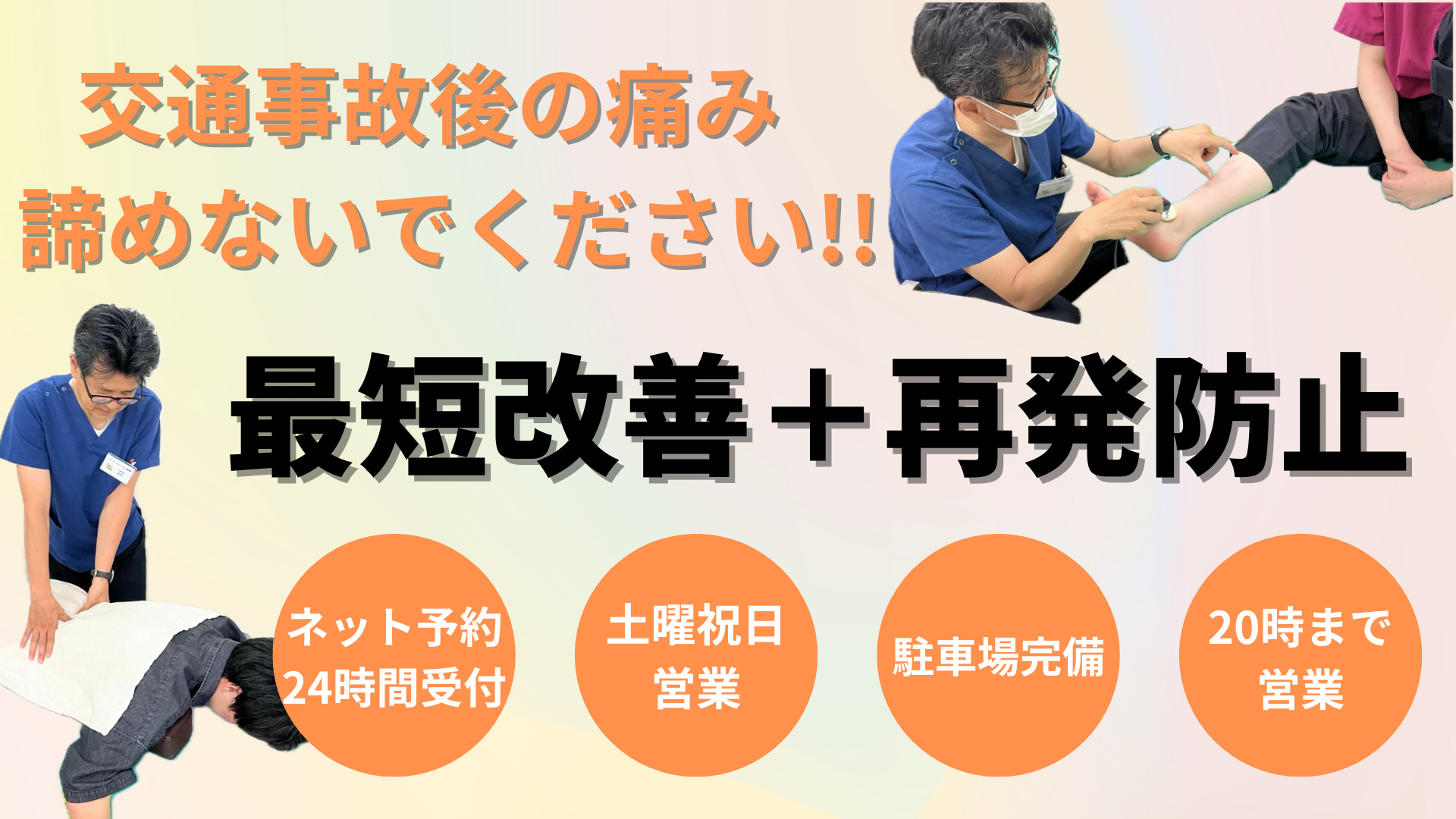 交通事故の怪我、特に「むち打ち」などの軟部組織の損傷は、レントゲンに写らない微細な変化が原因です。そのため、投薬だけでなく、直接体に触れるケアが欠かせません。